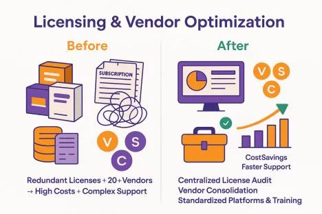 To bring clarity and cost savings, we led a comprehensive Licensing Optimization & Vendor Consolidation Program.